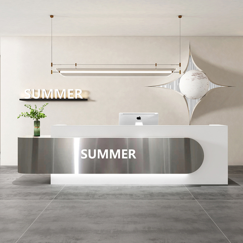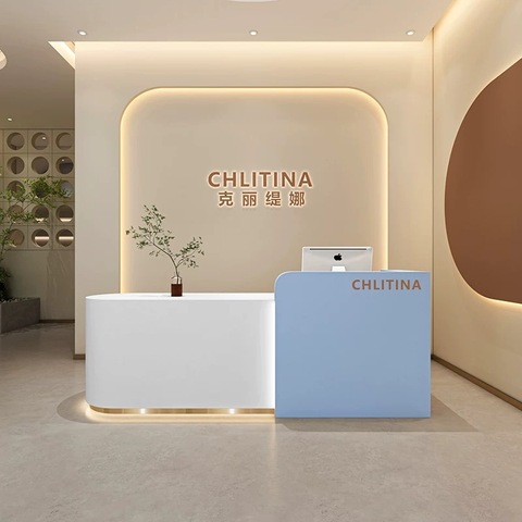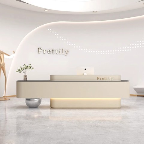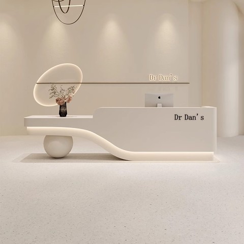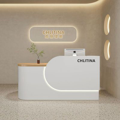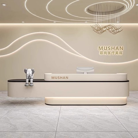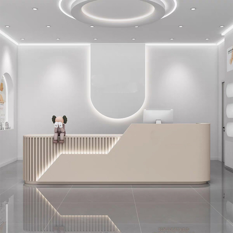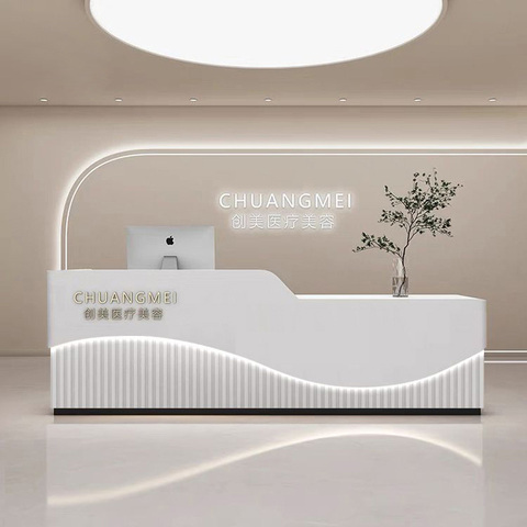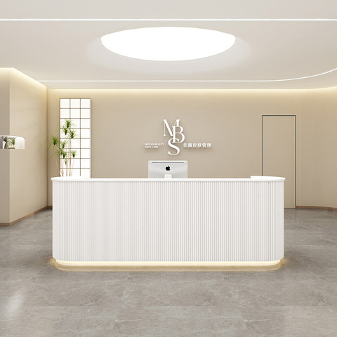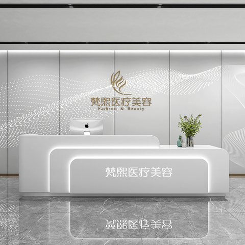 高級フロントライスホワイトランプカウンター付きスポーツセンター受付モダンカウンター受付ネイルサロン美容