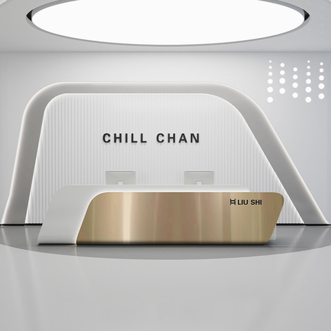 モダンなヘアサロンフロントカウンターホワイトゴールドネイルサロン受付高级スポーツセンター美容オフィス受付